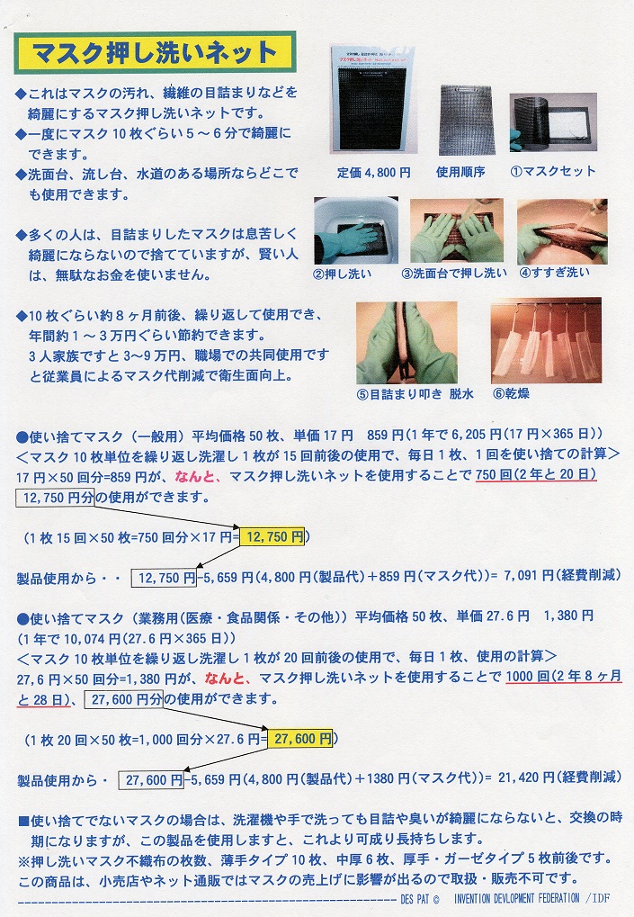 用のマスク押し洗いネットのご案内、及び従来品の使用方法の補足などを追加したカタログをご案内し